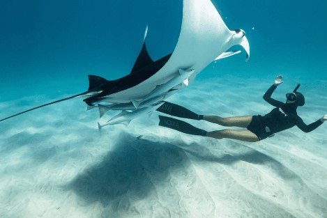 The highlight of the trip awaits at Manta Bay, where you’ll have the rare chance to swim alongside the majestic manta rays. Watching these graceful creatures glide effortlessly through the water is a once-in-a-lifetime experience.